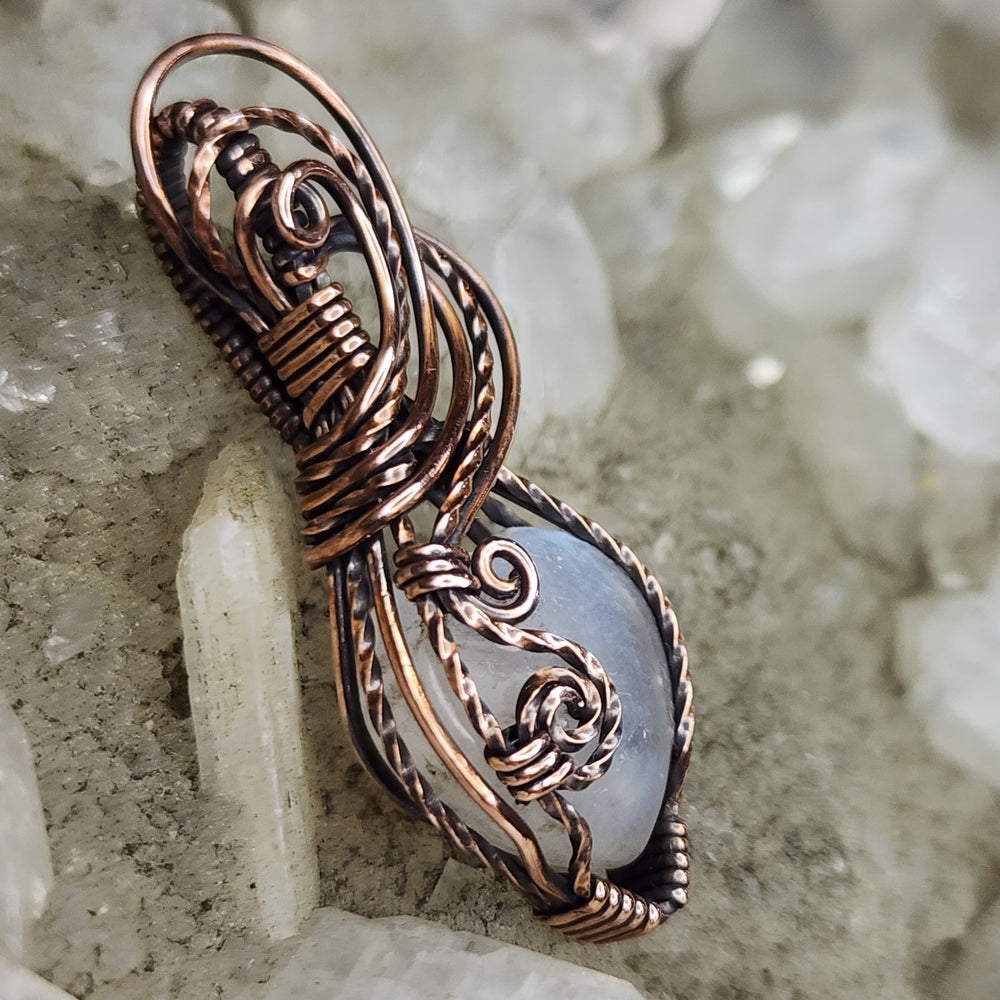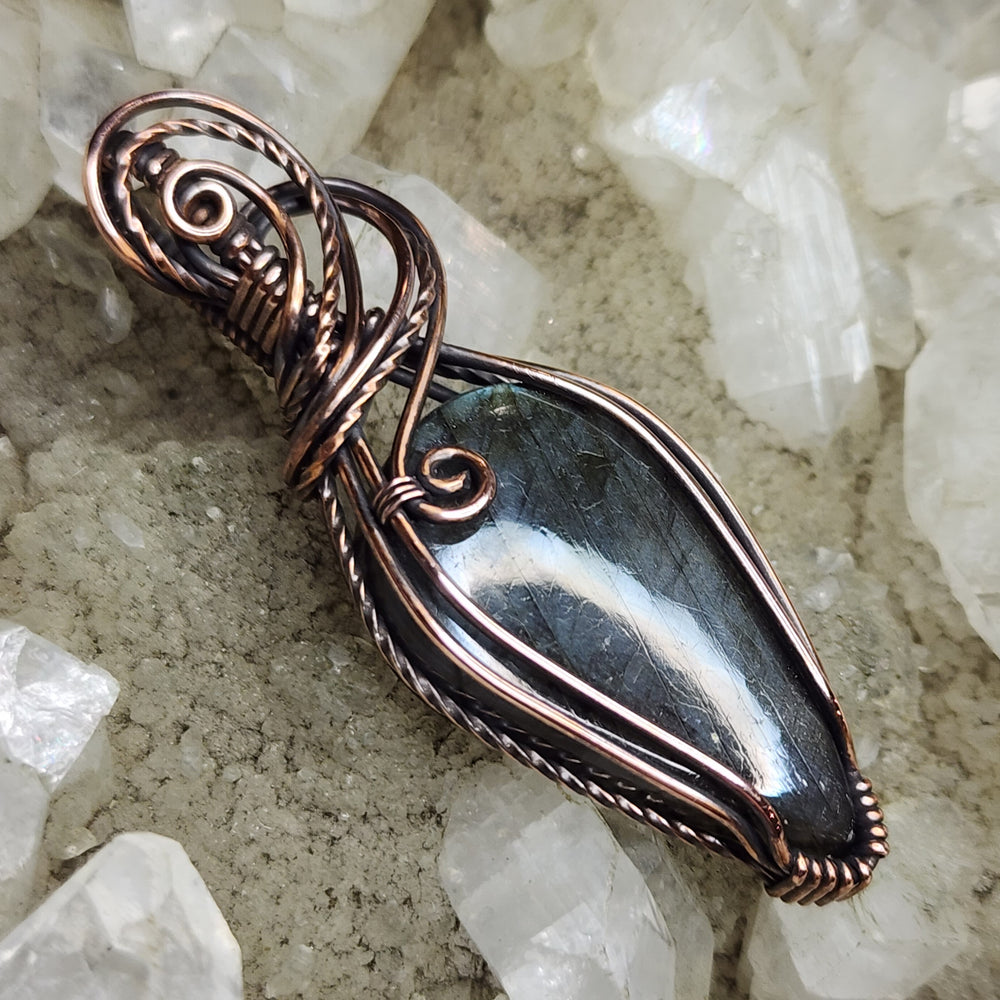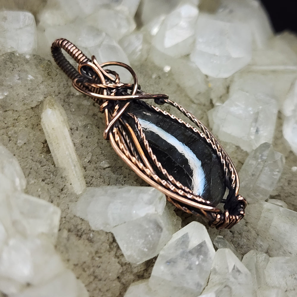 Wire Wrapped Pendants by Poesis Payne. Handcrafted wire wrapped pendants in the highest quality metals. Beautiful gemstones and minerals polished by hand.
